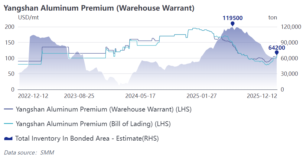 Thị trường giao ngay đã dự đoán trước xu hướng tăng: phí premium giao ngay SMM Japan MJP đã tăng lên 130 USD/tấn, tăng 85% so với mức thấp nhất vào cuối tháng 10. Tại cảng Klang, Malaysia, một trung tâm trung chuyển quan trọng cho nhôm thỏi ở châu Á, giá giao dịch FCA đạt mức 130-135 USD/tấn. Xét về logic thương mại, giá FCA 130 USD/tấn tại cảng Klang, cộng thêm phí FOB 20 USD/tấn và chi phí vận chuyển 12 USD/tấn, tương ứng với khoảng 162 USD/tấn tại các khu vực chính ở châu Á, cao hơn đáng kể so với giá thanh toán quý 4 năm 2025, bổ sung một tham chiếu trực tiếp cho sự phục hồi của phí premium trong quý 1 năm 2026. (Tuy nhiên, trên thực tế, do luồng hàng hóa cuối khác nhau, phí premium giao dịch FCA tại Malaysia chỉ đóng vai trò là hướng dẫn định hướng theo mục tiêu lợi nhuận.)