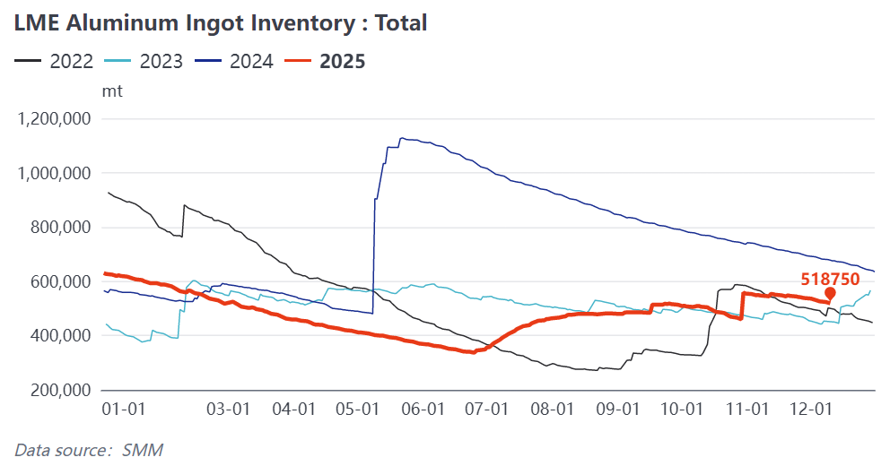 Các cơ hội chênh lệch giá giữa các khu vực đã mở ra, đẩy nhanh dòng chảy nhôm thỏi sang thị trường châu Âu và Mỹ. Kể từ quý 4 năm 2025, phí premium nhôm toàn cầu đã cho thấy mô hình phân kỳ cực đoan "châu Âu/Mỹ mạnh, châu Á yếu": phí premium sau thuế tại vùng Trung Tây Hoa Kỳ vượt quá 1.940 USD/tấn, phí premium cho nhôm thỏi P1020A tại Rotterdam, châu Âu, tăng lên 260 USD/tấn (tăng 62,5% so với đầu tháng 9), trong khi phí premium MJP của Nhật Bản trong quý 4 chỉ là 86 USD/tấn, và phí premium giao ngay tại Trung Quốc giảm mạnh do việc đóng cửa các cửa sổ thương mại gia công. Chênh lệch giá đã thúc đẩy hoạt động chênh lệch giá xuyên khu vực, khiến nguồn cung nhôm thỏi châu Á liên tục chảy sang châu Âu và Mỹ, trực tiếp dẫn đến sự sụt giảm nguồn cung nhập khẩu ở châu Á. Đến tháng 12 năm 2025, lượng tồn kho nhôm trong các khu vực kho ngoại quan của Trung Quốc đã giảm 50% so với mức cao nhất trong năm, và lượng tồn kho LME ở châu Á cũng ở mức thấp, tạo tiền đề cho sự phục hồi của phí premium MJP.